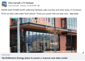 Montana law requires that Northwestern Energy show that there is no long term impact to customers from new large load contracts. In September 2025, Northwestern Energy stated they would not adhere to this as well as not offer opportunity for public comment or input. Gianforte and Daines, among the other parties leading this effort, are staying out of it and letting it all slide, as they are the ones who invited the data centers in the first place. At the end of November, a group of non-profits filed a petition with the Montana Public Service Commission asking to create a separate business classification for data centers, ensuring any costs associated with them are billed only to them. In response, Northwestern Energy filed a legal motion to acquire a protective order in disclosing any information in these contracts. There can be no other reason other than fear that the details will show that Northwestern Energy could break laws and/or confirm significant impacts to utility customers as well as water impacts.