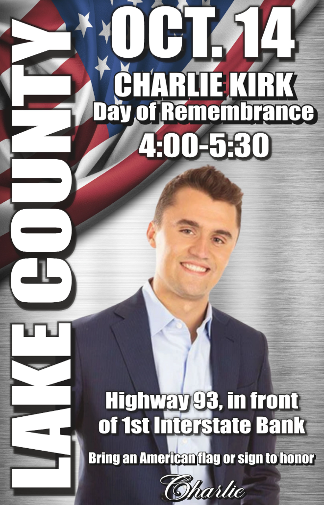 On September 18, there was a memorable vigil to pray for Charlie Kirk’s family, friends, and the freedoms that were attacked on September 10. The event was spearheaded by Kathy Shore, Chair of Lake County Republican Women. Beautiful! Thank you, Kathy, and all those that helped with uplifting words, prayers, flowers, flags, posters, sound systems, etc. Not to forget our law enforcement officers that put their own security at risk to keep us safe in exercising our freedoms! Thank you.