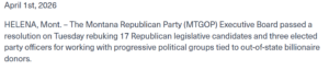 The Montana GOP is the only game in town capable of derailing the totalitarian plans of the far and extremely well funded left (think Soros, Bill Gates, etc,.).