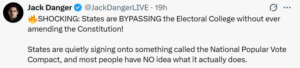Thanks to indefinite counting going on after Election Day, Kamala Harris’ popular vote is now at over 75 million, quietly creeping up from the initial counts. With compromised voter rolls anything is possible. That number may be used to justify a compact that looks like interstate collusion. Would it be constitutional? If we lose midterms and SCOTUS is packed, what may happen?